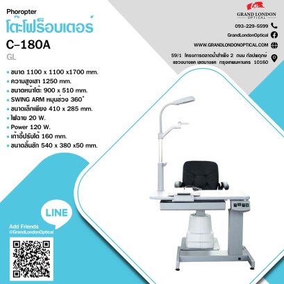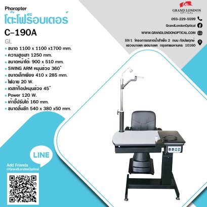 เป็นชุดโต๊ะและเก้าอี้สำหรับวัดสายตาที่ใช้ในร้านแว่นตาและคลินิกสายตา มีการออกแบบที่ทันสมัย