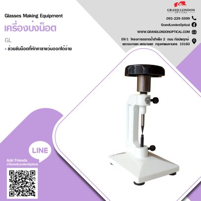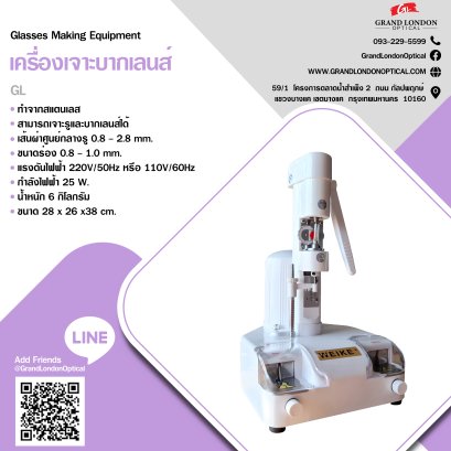 เครื่องเจาะบล็อกเลนส์ (Lens Block Driller / Lens Block Puncher) อุปกรณ์สำคัญในงานประกอบแว่น ใช้สำหรับ เจาะบล็อกเพื่อเตรียมติดกับเลนส์ก่อนเข้าเครื่องเจียร ช่วยให้บล็อกมีตำแหน่งรูที่แม่นยำ แข็งแรง ไม่หลุดง่ายระหว่างการเจียร