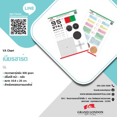 เนียรชาร์ต VA Chart สำหรับตรวจวัดสายตาระยะไกล เหมาะสำหรับร้านแว่น คลินิกสายตา และนักทัศนมาตรวิทยา ใช้วัสดุกระดาษอาร์ตมัน 300 แกรม