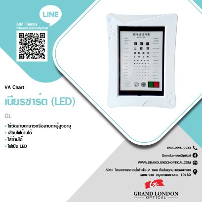 เนียรชาร์ต LED (VA Chart LED) เหมาะสำหรับใช้ตรวจวัดสายตายาวของผู้สูงอายุหรือผู้ที่มีปัญหาการโฟกัสระยะใกล้ มาพร้อมระบบไฟ LED ให้ความสว่างสม่ำเสมอ สามารถ เสียบไฟบ้านได้, ใส่ถ่านได้