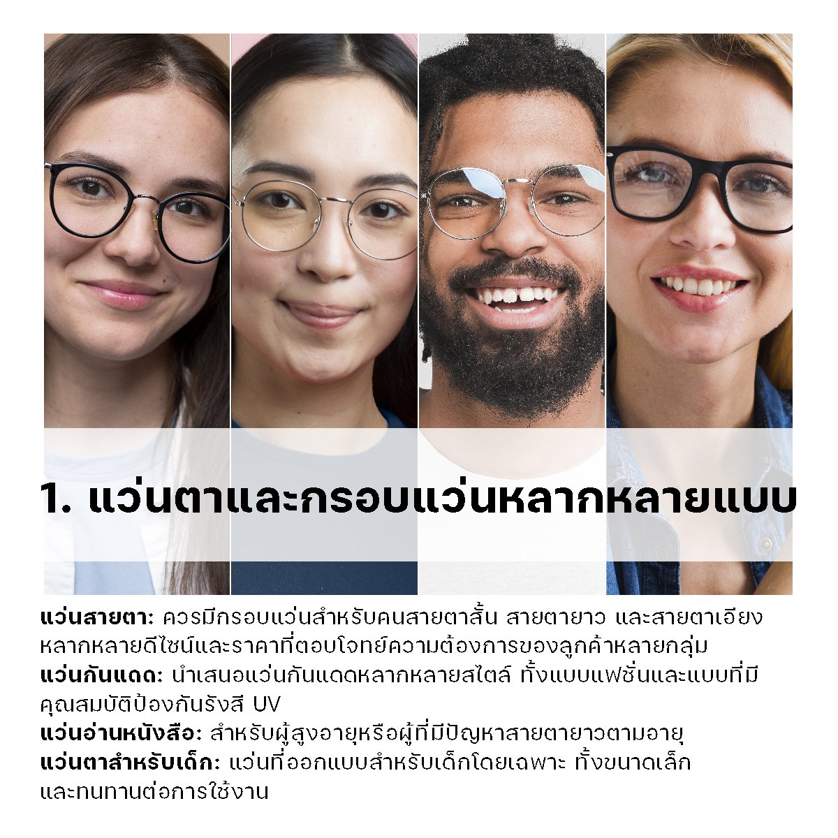 1. แว่นตาและกรอบแว่นหลากหลายแบบ