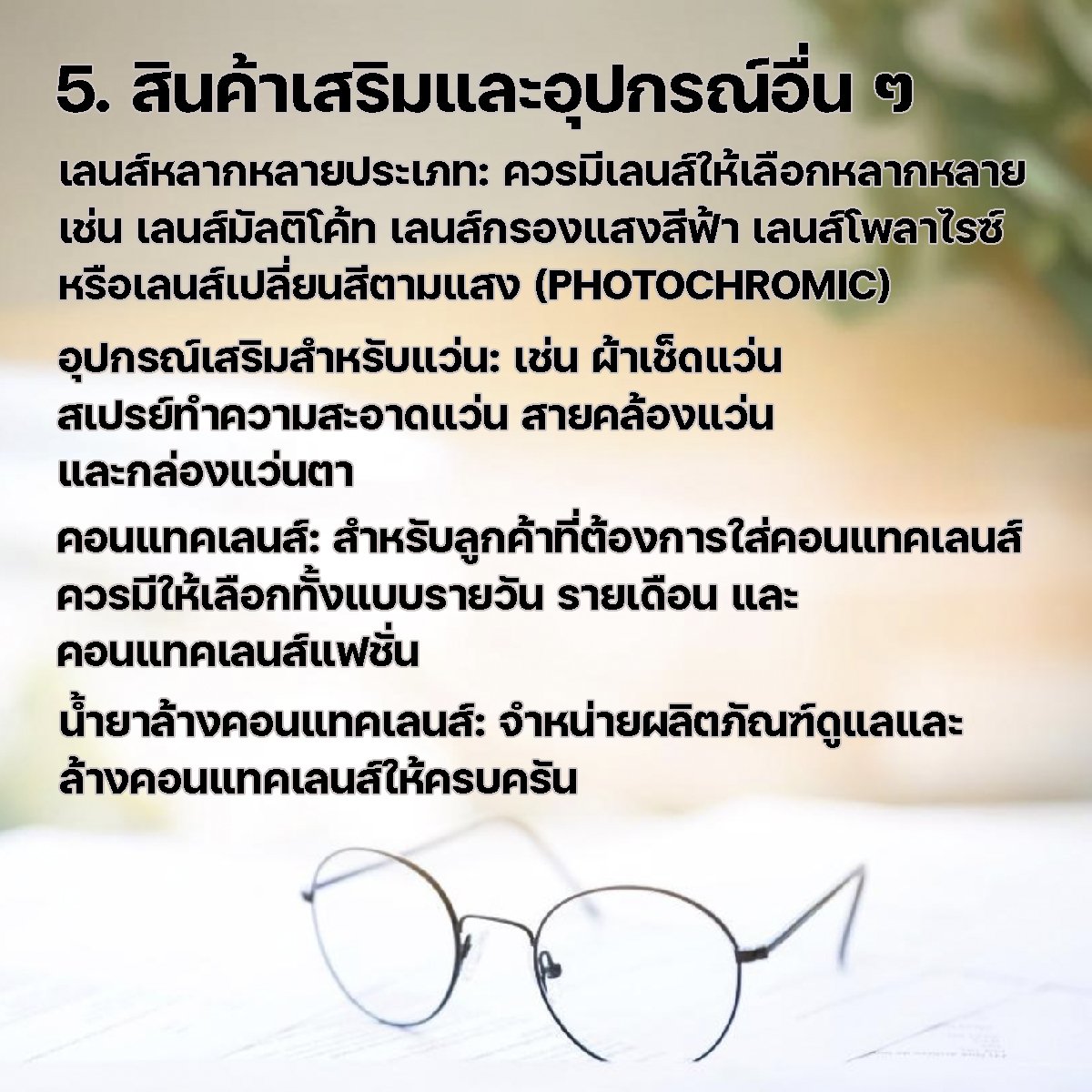 การเปิดหรือพัฒนาร้านแว่นตาให้ได้มาตรฐาน ควรมีองค์ประกอบสำคัญดังต่อไปนี้